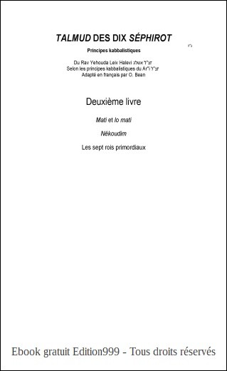 Dans ce deuxième volume du Talmud Des Dix Séphirot, le Soulam décrit de façon rigoureuse et ’’scientifique’’ les évènements spirituels intervenant dans les mondes successifs des ’akoudim (deuxième émanation), des nékoudim et des sept rois primordiaux. Une étude sérieuse du premier tome est nécessaire avant d’aborder ce tome 2 complexe mais passionnant, et qui réveille la émounah.