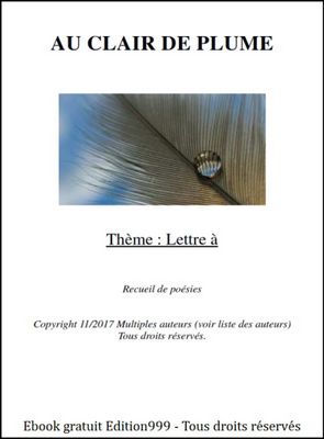Sur la communauté Au Clair de Plume, plusieurs écrivaines et écrivains se sont donné un thème et ont partagé leurs poèmes. Le thème ici publié est : " Lettre à " La variété des poèmes et écrits font sa richesse. Auteurs : Alicia Victoriama, Anne Françoise Rappez, Anneh Cerola, Deux Cent Cinquante Et Un, c. JoDe, Frédéric Charlet, Irène Mids, J. C. M., José Delattre, Juste moi c’est tout, Moi au bout de mes reves, Nadéliane B., P. SABAG, Poétiquement Votre, Rivière Rivière, Scribe 7, Souleymane Loembé